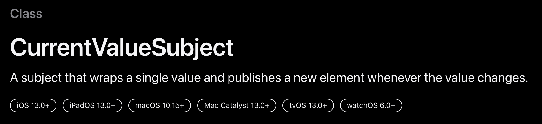 PassthroughSubject와 달리 CurrentValueSubject는 가장 최근에 publish된 element의 buffer를 유지합니다.