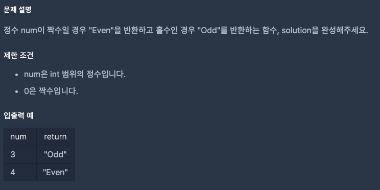 즉, num % 2 == 0 연산자가? 참일때는 Even : 거짓일때는 Odd 를 출력해줘!