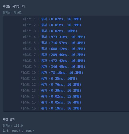확실히.. 좋다고 생각한 풀이의 속도가 훨씬 좋네요.....ㅎㅎㅎㅎ..