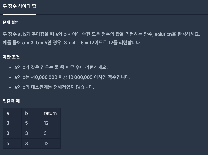 오늘은 두 정수 사이의 합을 풀어보았습니다!!